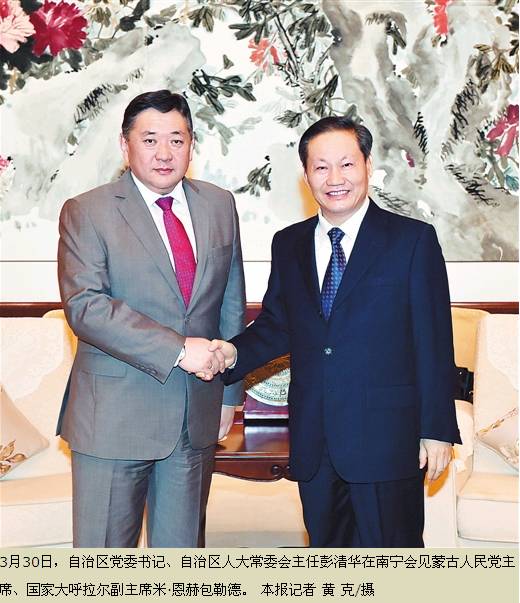本报南宁讯 (记者/魏恒 周珂)3月30日,自治区党委书记、自治区人大常委会主任彭清华在南宁会见了蒙古人民党主席、国家大呼拉尔副主席米·恩赫包勒德率领的蒙古人民党代表团。
