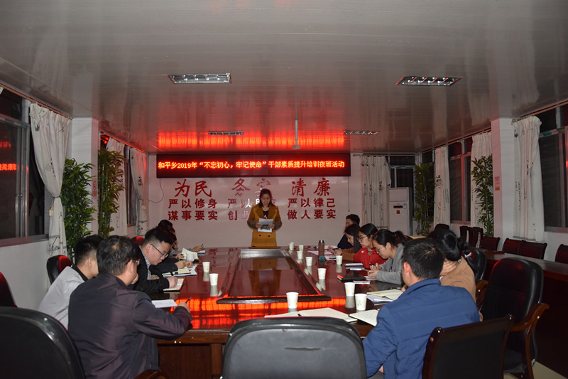 为促进年轻干部能力提升,在干部职工中掀起“我不干谁干,我不担当谁担当”热潮,4月11日晚,和平乡召开“不忘初心,牢记使命”干部素质提升培训夜谈活动,乡班子领导、年轻干部等20人参加。