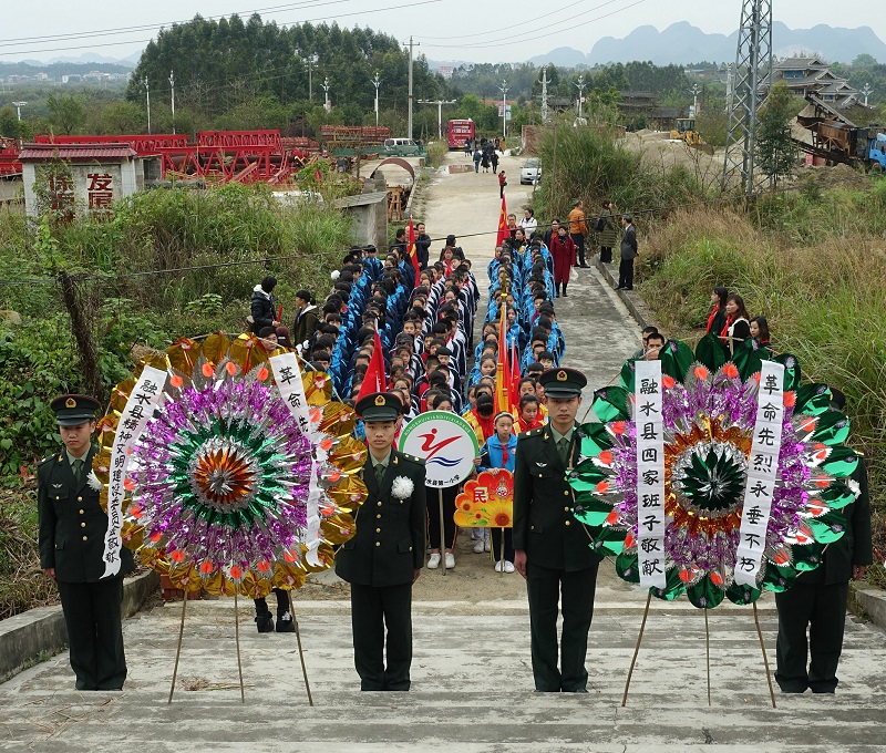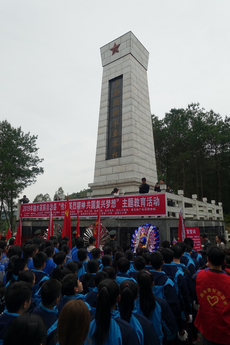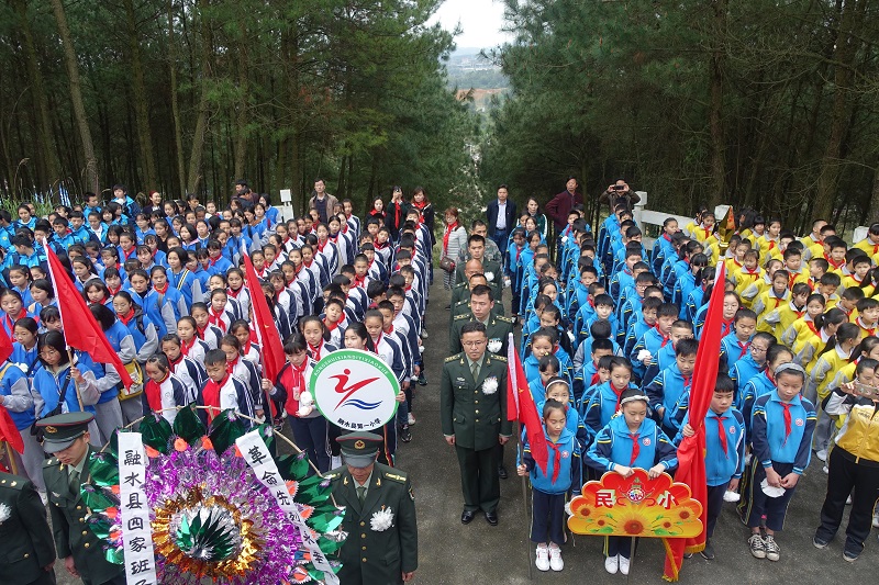 为缅怀革命先烈,弘扬爱国主义精神,推进社会主义核心价值观建设,2019年4月1日,清明节前夕,融水苗族自治县政协、武装部、宣传部、文明办、团县委、关工委、妇儿工委、老干部局、妇联、教育局、史志办、文体广电和旅游局、青少年活动中心、民族小学等部门在融水水东烈士墓联合主办“2019年‘传承英烈精神 共圆复兴梦想’主题教育活动”,活动主办单位干部职工代表、武装部官兵代表、中小学生代表等400多人参加活动。