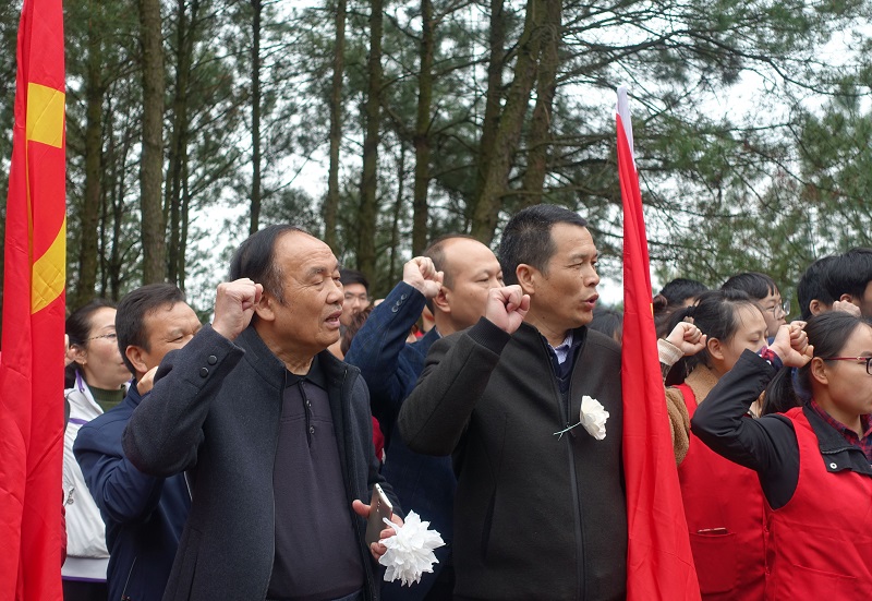 在庄重的祭扫烈士墓仪式上,参加活动人员通过奏唱国歌,向革命先烈默哀,鞠躬,重温入党、入团、入队誓词,瞻仰革命烈士纪念碑并敬献花圈和小白花等方式,寄托对革命先烈的无限哀思和深切缅怀。