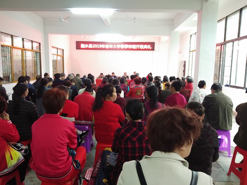 4月10日,融水县老年大学举行2019年春季学期开班典礼,县委组织部副部长、老干部局局长何勇出席会议。会议回顾了老年大学2018年办学成果,老年大学学员深入乡镇村屯开展春联义写、书画展、文艺下乡村等社会实践活动,得到群众好评,并对新学期教学管理工作提出要求。