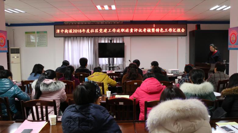 为深入贯彻“十九大”精神,推进全面从严治向基层延伸,打造一支思想先进、素质过硬的党组织队伍,推进党员干部考核向科学性、规范化迈进。2019年1月17日,潭中街道党工委召开社区党建特色工作汇报暨基层党组织书记落实主体责任述职述责评议会议,潭中街道党工委书记钟宏珊,城中区纪委常委、纪检监察室主任符勇军,城中区委组织部干部史海龙,潭中街道党工委领导班子成员及各社区、村党员干部共40余人参加此次会议。大会由潭中街道党工委副书记荣霄同志主持。