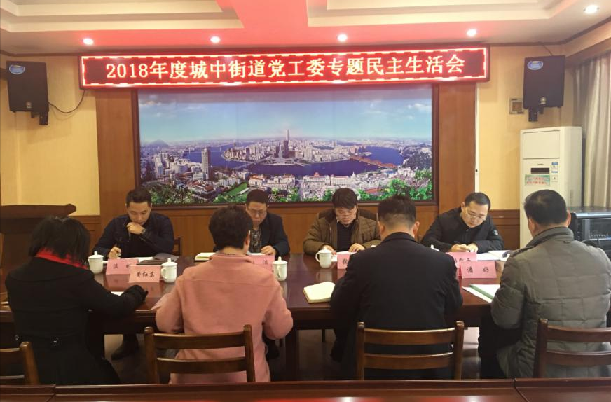 1月24日,城中街道党工委召开2018年度党员领导干部民主生活会。城中区委政法委副书记陈浩、区纪委信访室主任温彬、区委组织部彭哲云应邀出席会议。城中街道党工委领导班子参加会议。