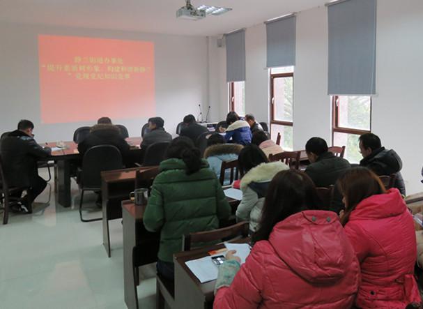 为认真贯彻落实新修订的《中国共产党廉洁自律准则》和《中国共产党纪律处分条例》,宣传廉政法规知识,提高我街道党员的廉政意识,2月2日下午,静兰街道在办事处会议室开展以“提升素质树形象,构建和谐新静兰”为主题的《准则》和《条例》知识竞赛。我街道党工委班子成员、机关在职党员、所辖社区村党支部书记、副书记、党建组织员等30余人参加了此次竞赛。