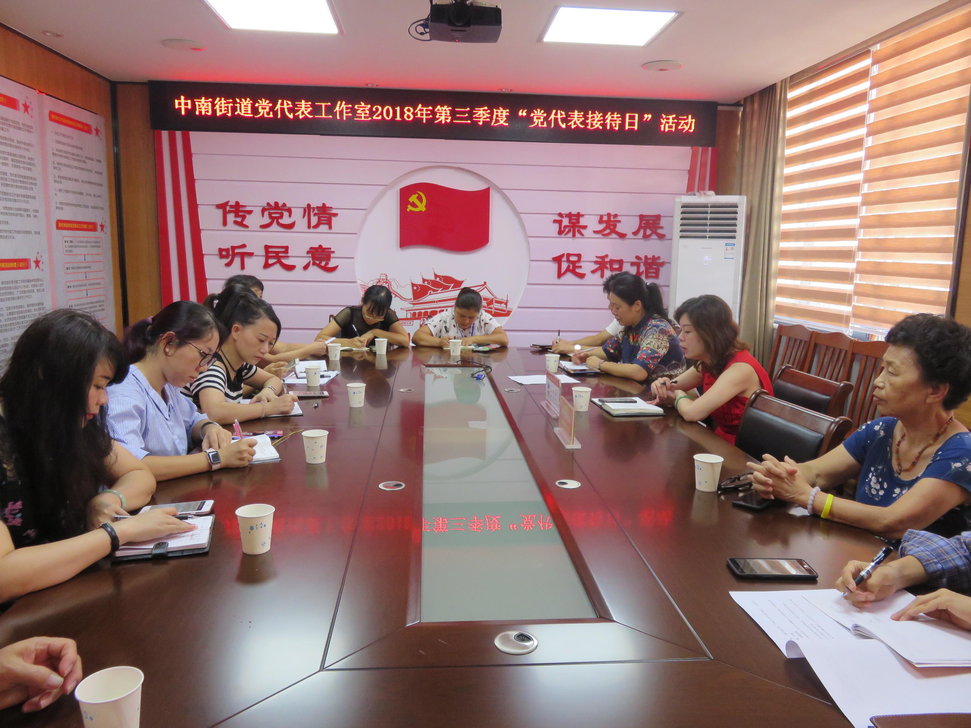 不断深化党代表任期制工作,发挥党代表参与党的建设、参与中心工作和联系服务党员群众作用,9月19日下午,中南街道党工委在党代表工作室开展了以“情满中秋团圆月,党员关爱在践行”为主题的2018年第三季度“党代表接待日”活动。街道社区党员骨干、党员群众代表参加了此次活动。