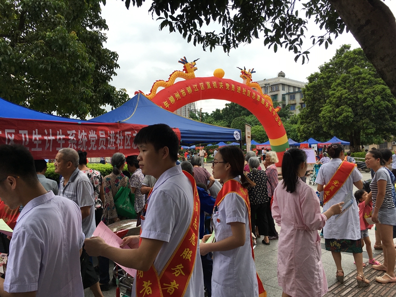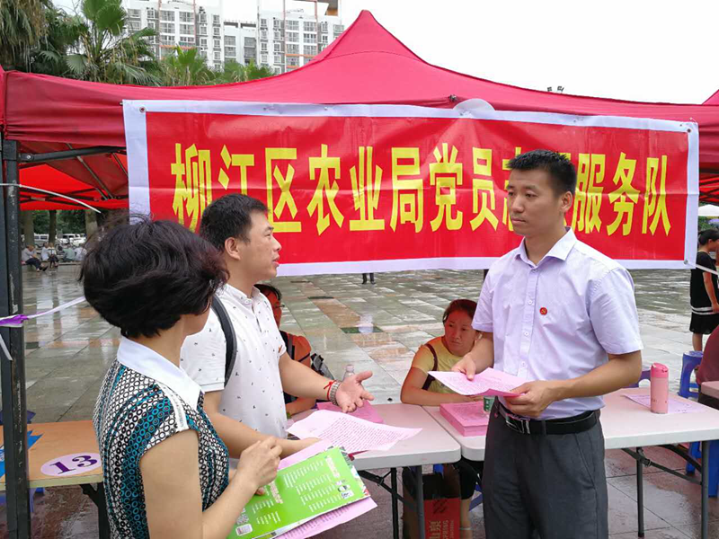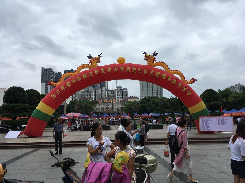2017年7月1日,是中国共产党建党96周年。柳江区直机关单位50多个党支部200多名党员,在人民文化宫广场开展“为党旗增辉”党员进社区志愿服务集中活动。区委常委、组织部部长李睿到场指导。