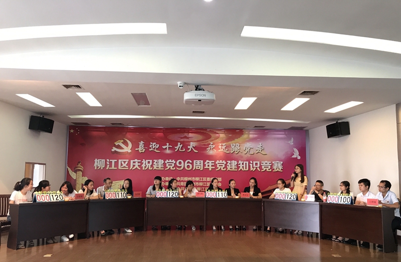 “喜迎十九大,永远跟党走”党建知识竞赛是我区纪念中国共产党成立96周年和迎接党的十九大胜利召开系列活动之一,是促进“两学一做”学习教育常态化制度化的一项重要措施,活动即丰富了全区党员的文化生活,让广大党员熟知党的知识和柳江发展历程,又增强了广大党员的荣誉感、责任感和使命感,激发广大党员投身到柳江发展建设的各项事业中。