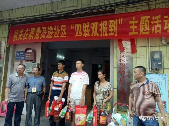 2017年9月30日,柳江区委组织部、柳江区市容局、柳江区总工会、柳江区发改局等4家单位党(总)支部到结对共建单位拉堡镇鹏飞社区开展"四联双报到"集中服务活动日活动。