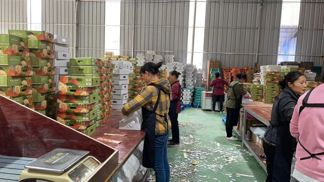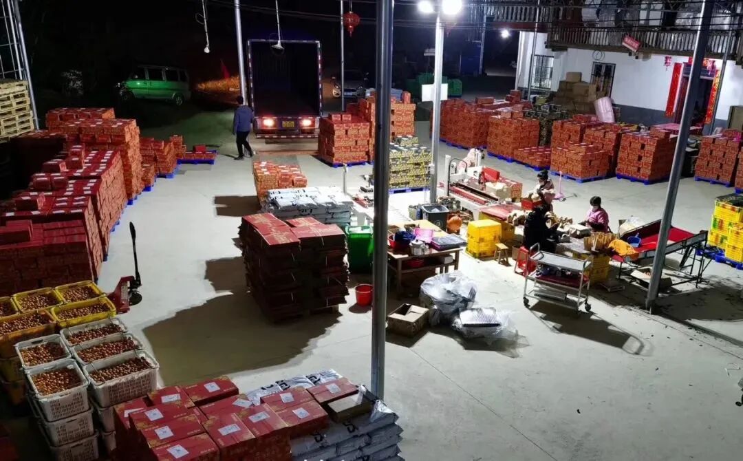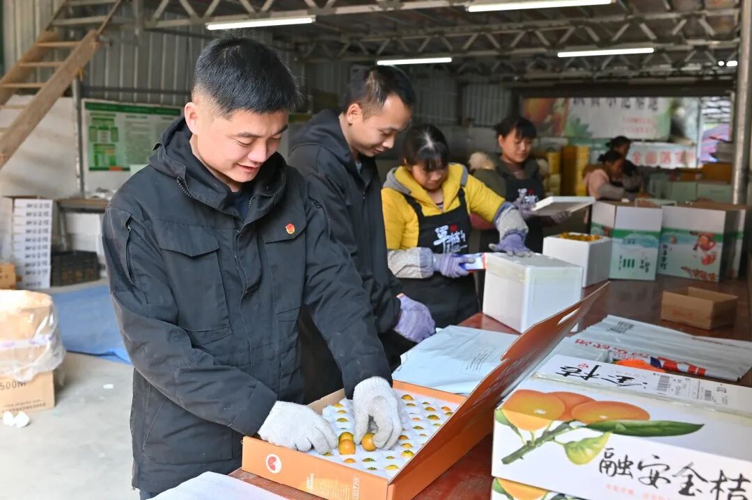 在“军桔”分拣包装厂里,林俊合正在打包金桔