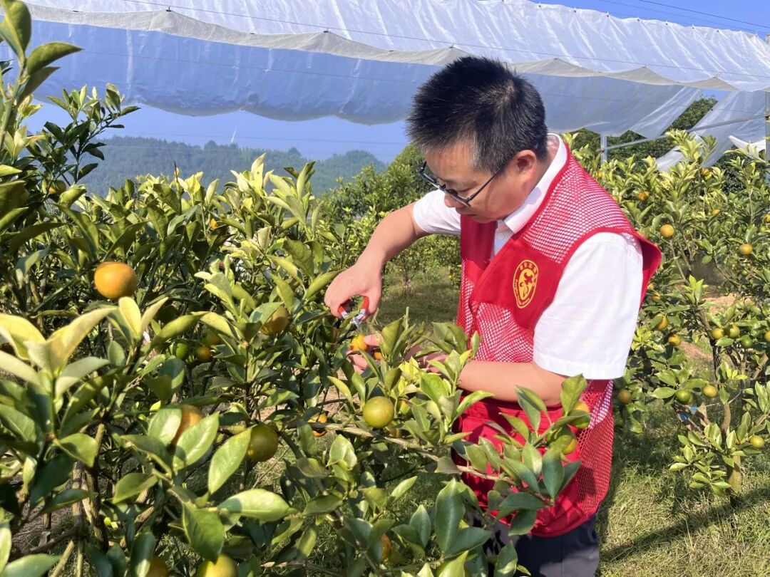 浮石镇政府党支部、镇直机关部分党员和新时代文明实践所志愿者到浮石镇六寮村开展助农摘果活动