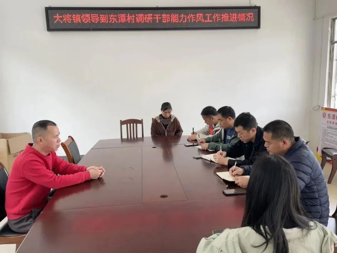 大将镇党委书记袁望(左一)到东潭村了解干部能力作风工作推进情况,谋划布置重点工作 加强日常管理监督。加强党员干部“八小时外”行为监督管理,加强生活作风问题和公职人员酒驾醉驾背后“四风”问题专项整治,严防“四风”反弹。加强考勤考核。完善《大将镇干部职工请销假制度》《大将镇干部职工考勤管理制度》,通过纪委监督,严查走读和迟到旷工现象,形成每月一通报,保持“开局争先,实干担当”的精神状态。压实“四责协同”责任链。常态化与班子成员及下级“一把手”开展廉政谈心谈话廉政谈心谈话26人次、廉政家访2次,推动班子成员与分管部门负责人开展廉政谈话12人次,纪委书记与同级班子开展廉政谈心谈话8人次,进一步凝聚思想共识,提升战斗力和执行力。