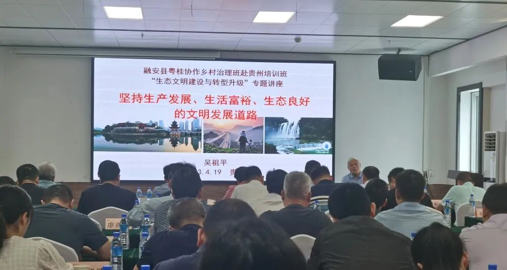为全力推进巩固拓展脱贫攻坚成果同乡村振兴有效衔接,进一步提高乡村振兴干部的业务能力和综合素质,培养一支工作能力强、有担当善作为、作风过硬的乡村振兴人才队伍,今年以来,融安县利用粤桂协作资金开展乡村振兴系列培训,先后在贵州大学举办乡村振兴领导干部能力提升专题培训班和粤桂协作乡村治理班,在四川大学举办乡村振兴人才工作者专题培训班和农业产业经营管理培训班,共计举办4期培训285人。 乡村振兴领导干部能力提升专题培训班开班仪式(贵州) 粤桂协作乡村治理班“生态文明建设与转型升级”专题讲座
