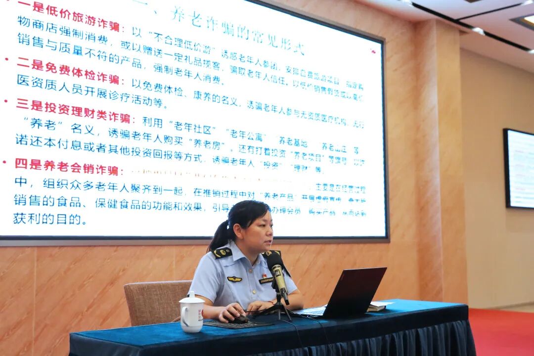 县市场监督管理局执法稽查大队副大队长凡媛在讲授老年人防骗知识