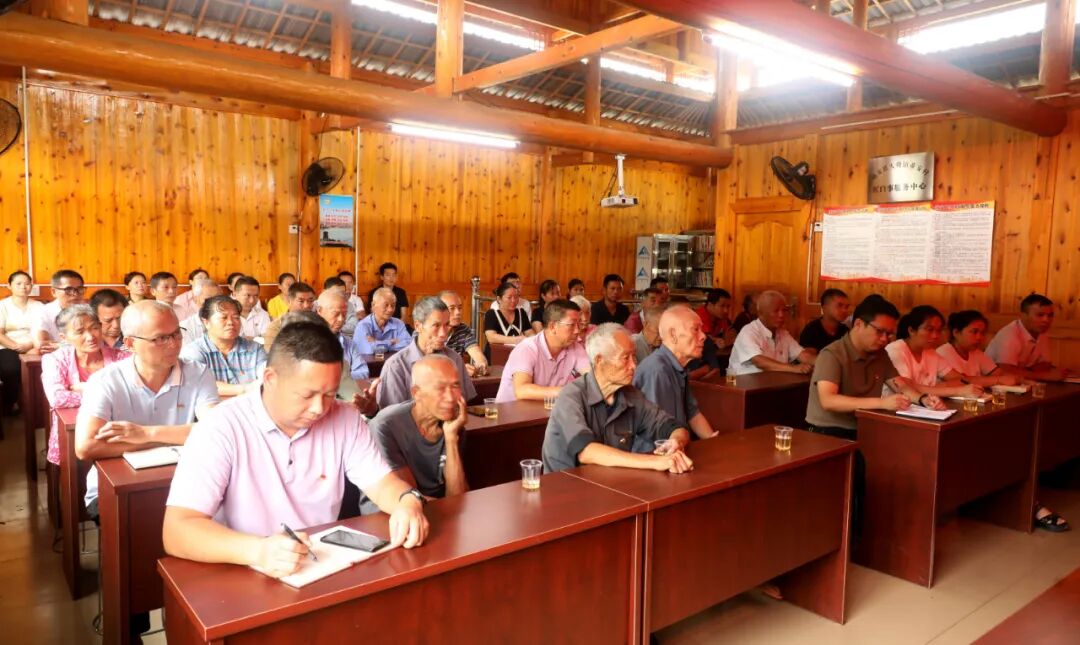 6月28日,在融安县大将镇董安村党群活动中心拍摄的2023年董安村“七一”专题党课活动现场。(武巍 摄)