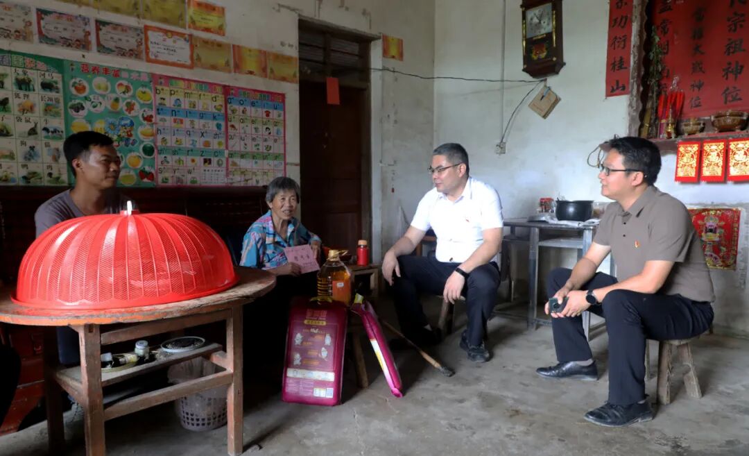 6月28日,在融安县大将镇才妙村困难党员韦美秀家里,县委副书记、县长于福坚(右二)了解老人生活及医疗情况。(武巍 摄)当天,于福坚还到大将镇才妙村看望慰问了困难党员,详细了解他们的生活起居和身体情况,给他们送上慰问金、慰问品,同时叮嘱乡镇和村“两委”干部要多走访、勤看望我们的老党员,密切关注他们的健康状况、生活状况,用心用情为他们排忧解难,让他们真正感受到党和政府的关怀与温暖。