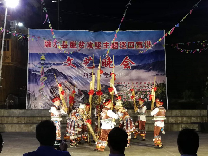 晚会内容丰富,形式多样,演员们通过舞蹈、声乐、快板、山歌、芦笙演奏等形式,用老百姓最熟悉、最喜爱的形式,大力宣传党的党的惠民政策,收到了极好的效果。