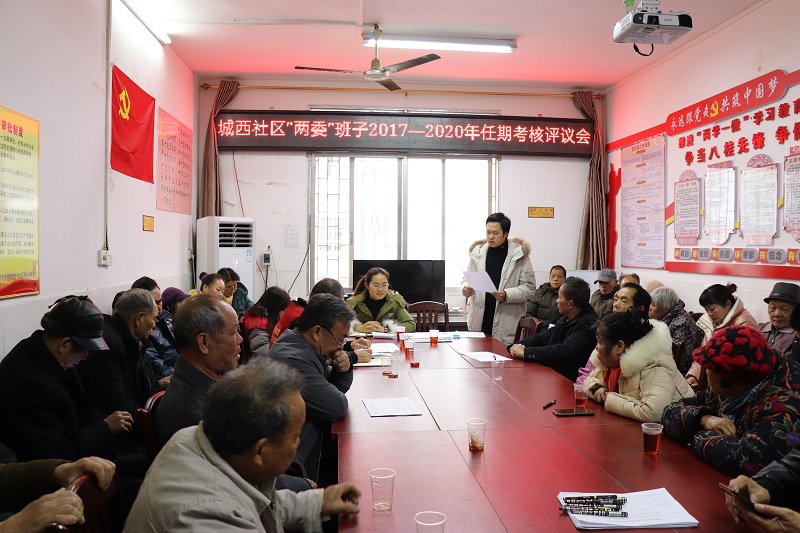 城西社区“”两委”干部在考核会上述职。