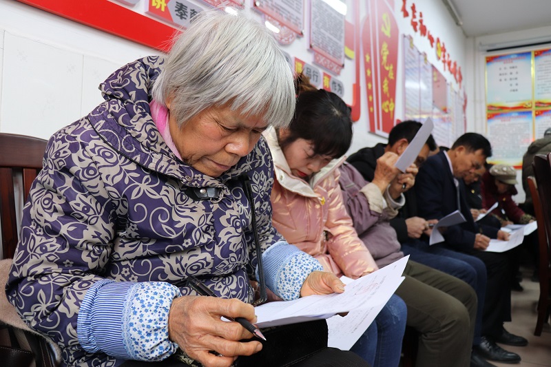 居民代表对社区干部进行民主评议。