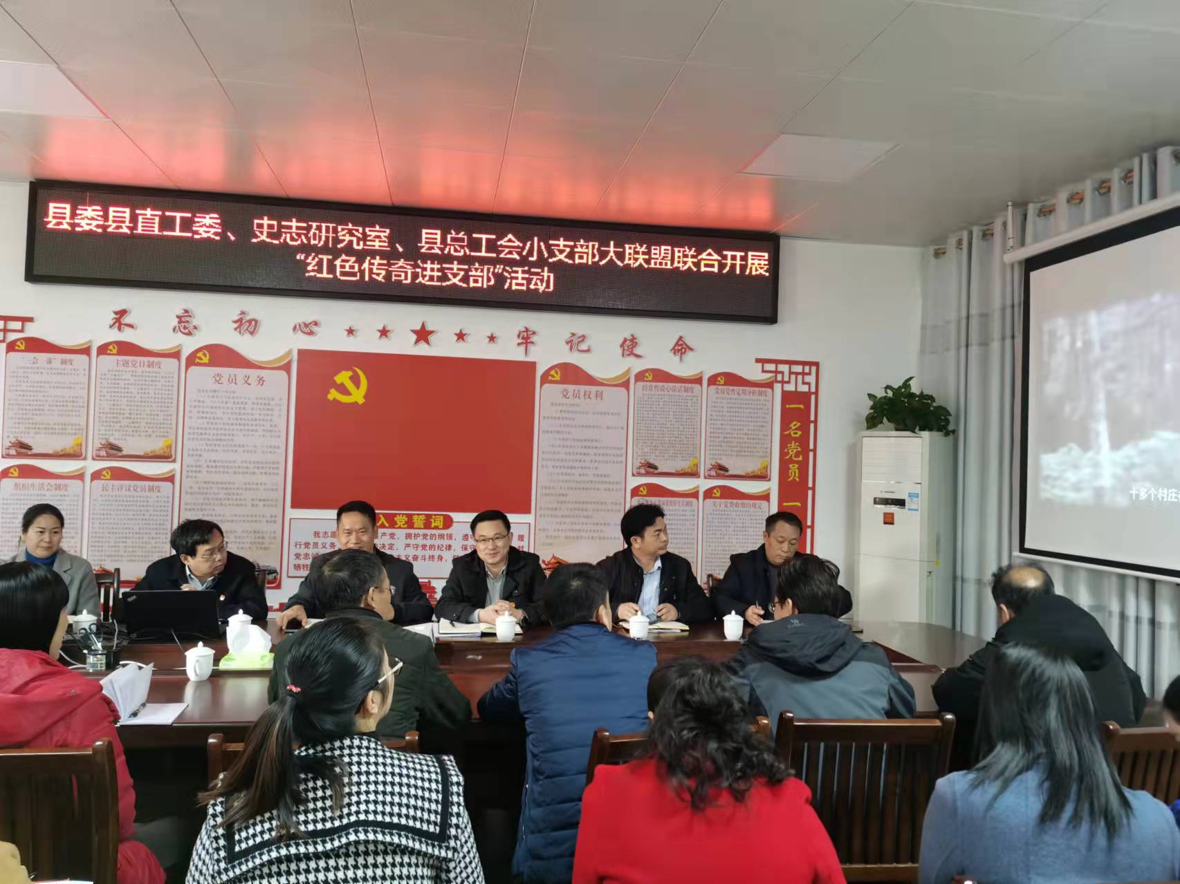 11月23日,县委县直机关工委、县委史志研究室、县总工会小支部大联盟联合开展“红色传奇进支部”活动,县委常委、县委办主任,县直机关工委书记荣家飞参加活动并作指导。