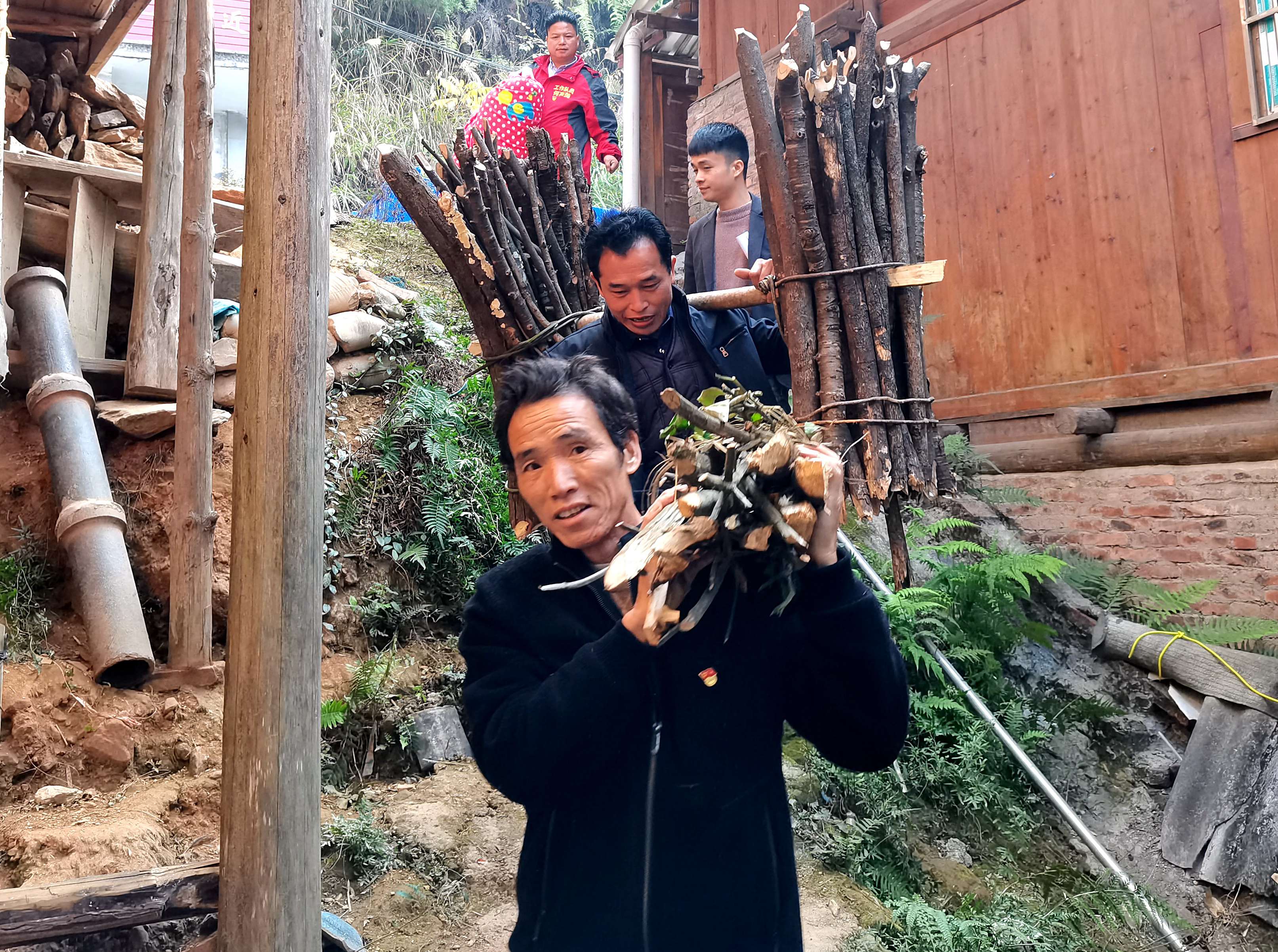 12月24日,同乐苗族乡净代村驻村工作队在日常入户走访时,发现净代屯脱贫不稳定户代奶种两户家中已无柴火取暖,驻村工作队随即与村“两委”商议,决定上山林找些柴火为两位老人送去,解决他们的燃眉之急,老人在收到柴火后拉着驻村工作队员的手,连声道谢。