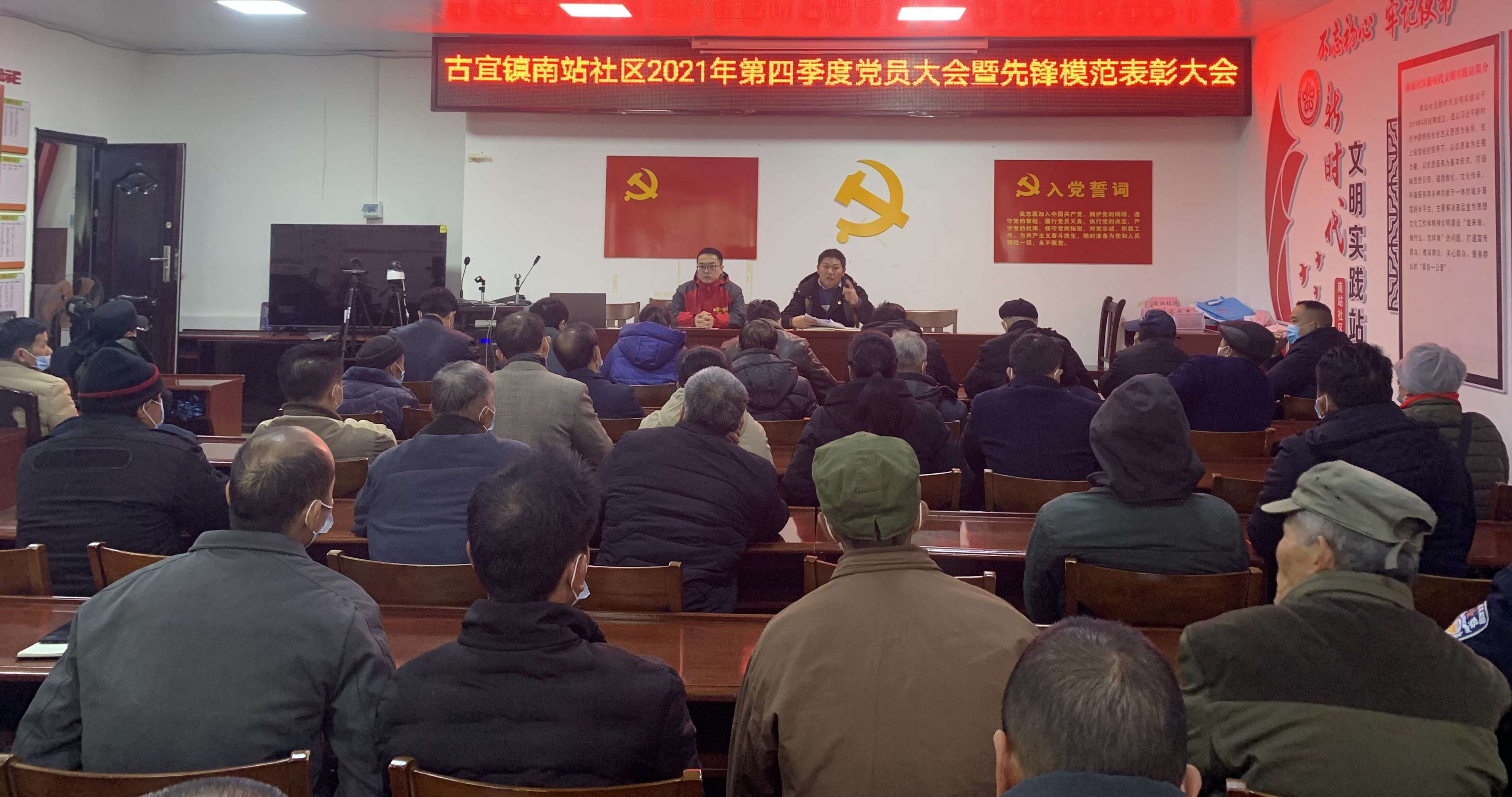 12月27日,在古宜镇南站社区召开2021年第四季度党员大会暨先锋模范表彰大会。