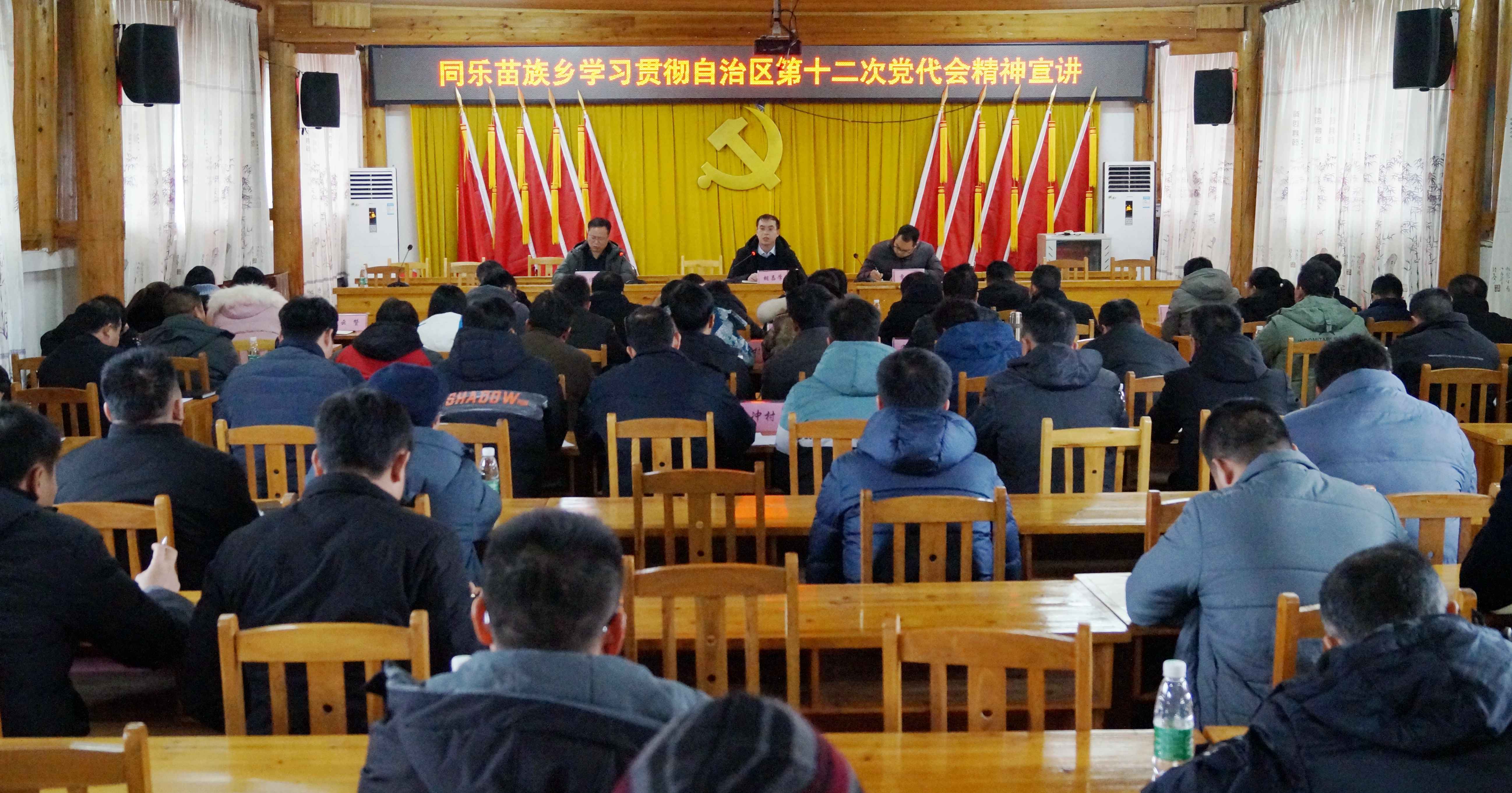 12月26日,同乐苗族乡召开乡村干部大会,传达学习自治区第十二次党代会精神,全乡干部职工、驻村第一书记、各村党支书参加会议。