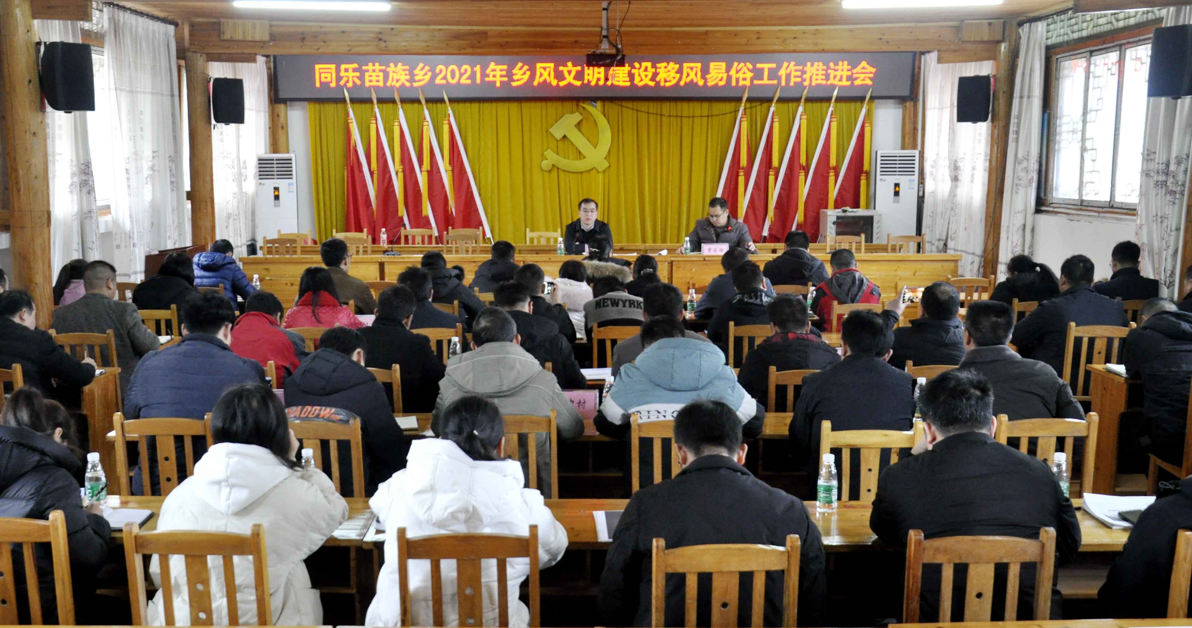 12月28日,同乐苗族乡召开乡风文明建设移风易俗工作推进会,会议传达了市、县推进移风易俗工作有关文件及会议精神,对全乡2021年移风易俗工作开展情况进行总结,对当前存在的问题进行了剖析,对下一步工作进行详细部署。