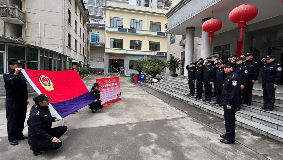 1月10日是第二个“中国人民警察节”,三江县人民法院司法警察大队通过开展“向警旗宣誓”活动,重温入警誓词,以忠诚筑警魂。
