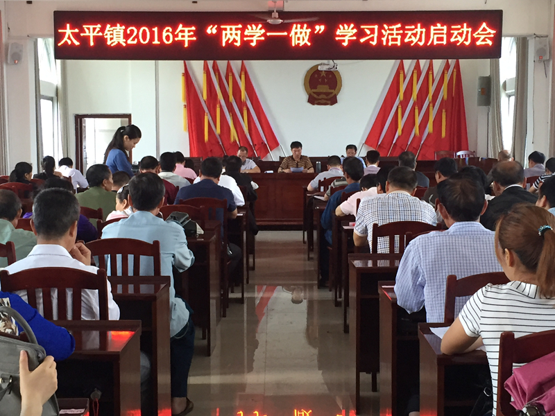 太平镇:5月13日,太平镇召开“两学一做”学习教育启动会。会议传达了中央关于开展“两学一做”学习教育的相关精神和要求,安排部署镇“两学一做”及当前党建重点工作。会议要求全体党员干部一要深化认识、主动作为;二要明确目标,精准发力,做到“学、改、做”三位一体、有机结合;三要增强合力,纵深推进;四要将“两学一做”学习教育与镇中心工作相结合,突出抓好重点工作,以工作成效检验学习教育效果。