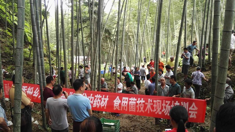 香粉乡非公党支部技术骨干党员为食用菌种植技术培训班基地现场讲课
