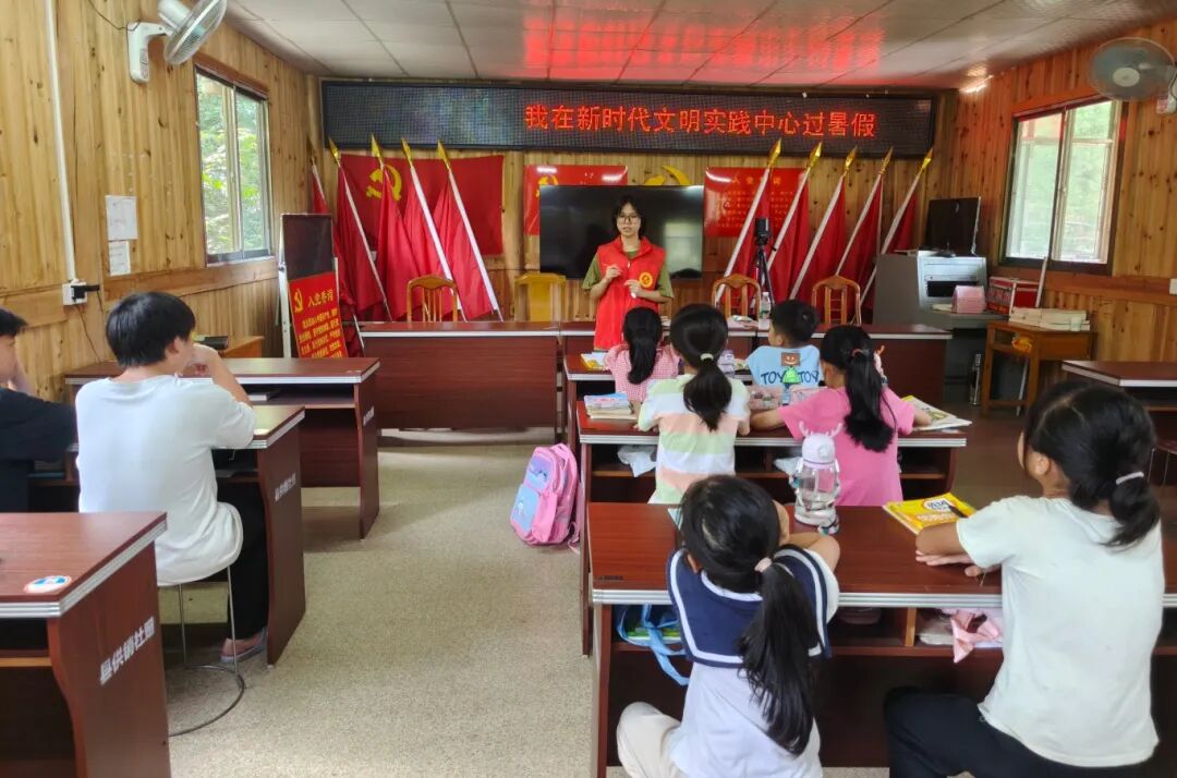 和平乡清江村开展“我在新时代文明实践中心过暑假”活动,大学生志愿者正在为学生授课。吴英媚 摄