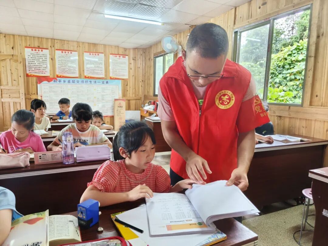 党员志愿者为清江村暑期读书班学生辅导作业。吴英媚 摄