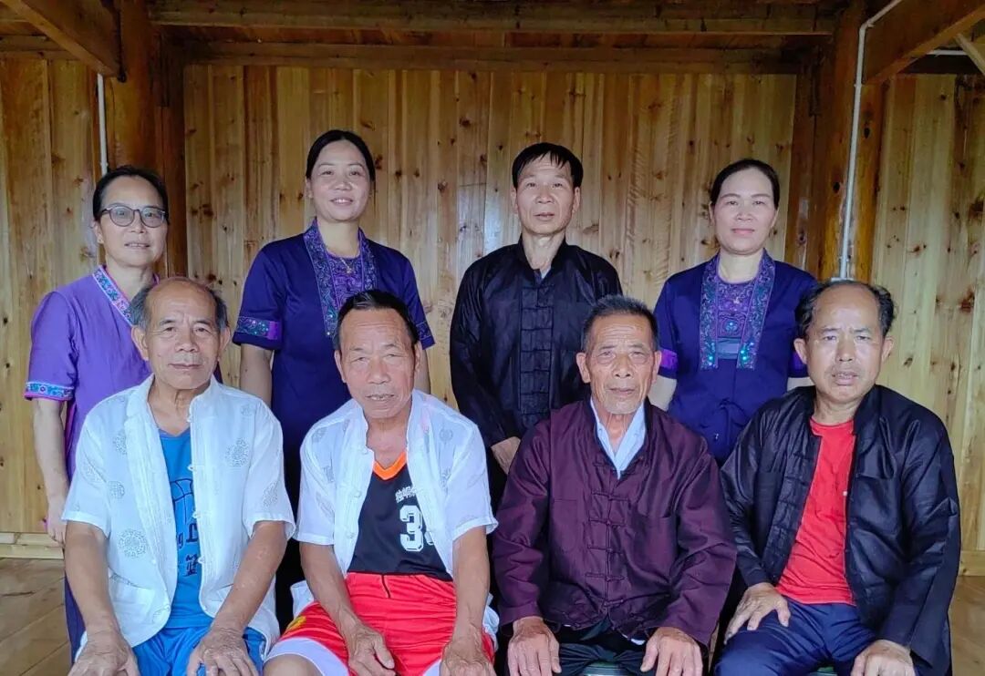 吴美莲(后排左1)与《高定民歌》收集采编人员在高定村集中审稿合影
